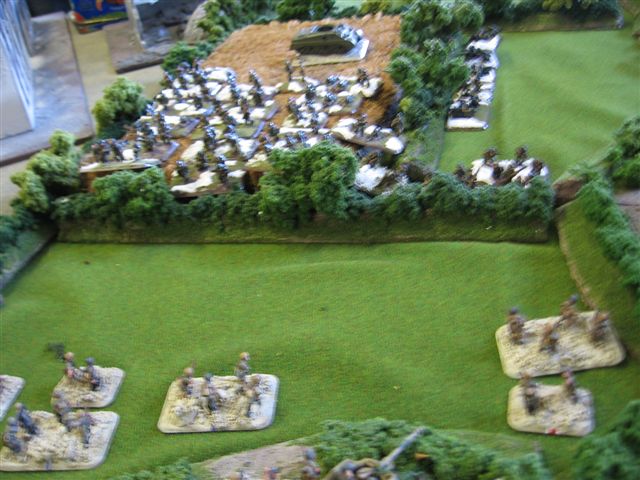I got to auto defend so placed the paks aiming down all the road ways, the panzer II nest in Cassino and the flak and HMG nest further forward to slow down the infantry (lesson learned fomr game 1). The marders were in ambush and an FJ platoon + attached mortars & a shrek waited for the onslaught.
